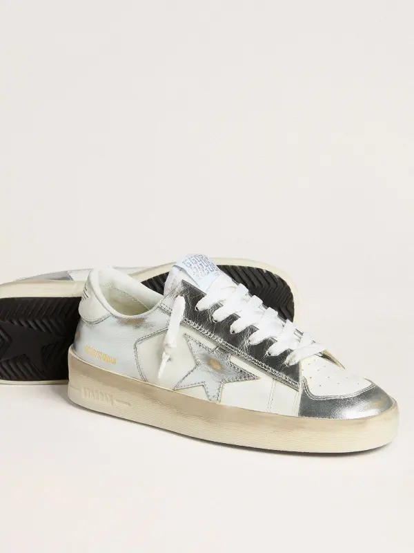 The glorious Nineties wrapped up in a sneaker. The Stardan sneakers pay homage to the basketball icons of that decade, while keeping an eye on the present. In this women's version, the silver foiled leather upper features a silver foiled leather star and white leather heel tab. And white laces add the finishing touch.