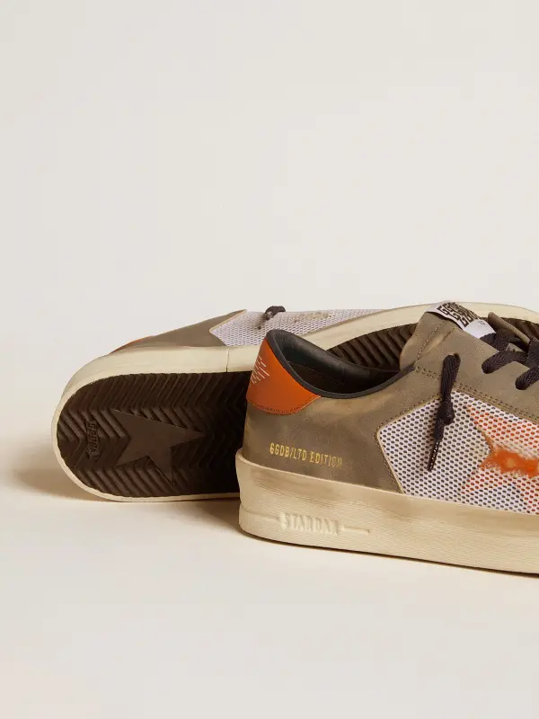 The glorious Nineties wrapped up in a sneaker. The Stardan sneakers pay homage to the basketball icons of that decade, while keeping an eye on the present. This version with a gray leather upper and white mesh inserts features an orange leather star and heel tab. And black laces add the finishing touch.