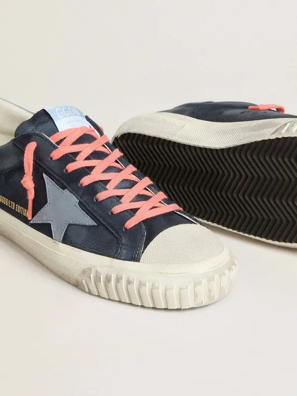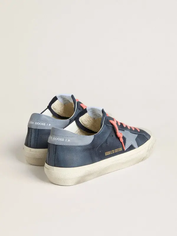 Super-Star in navy-blue leather with light blue leather star and heel tab