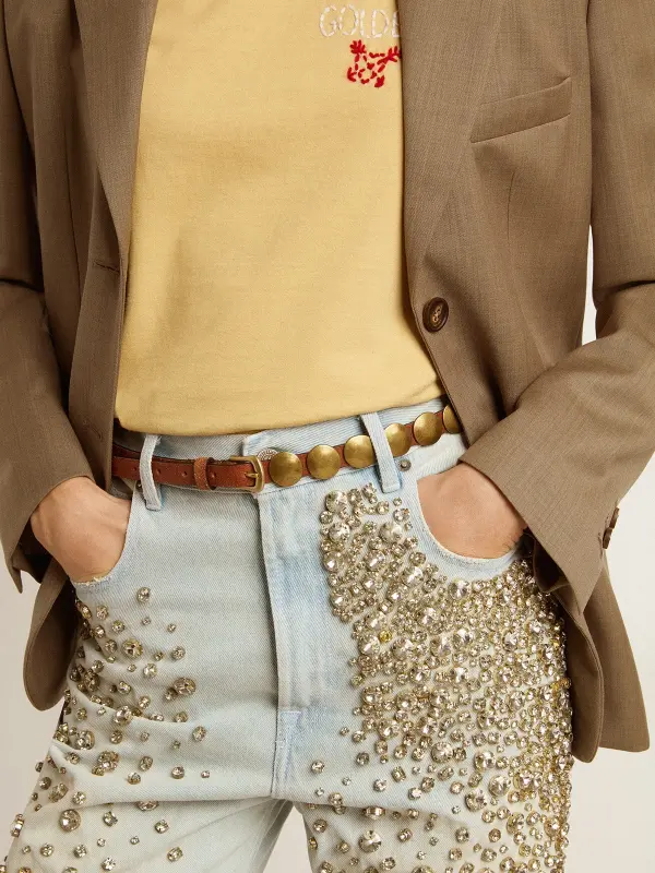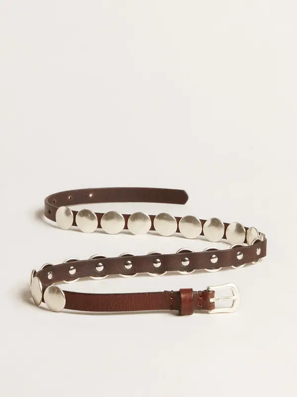 Home / Shop / Accessories / Trinidad thin belt in dark brown leather with silver studs