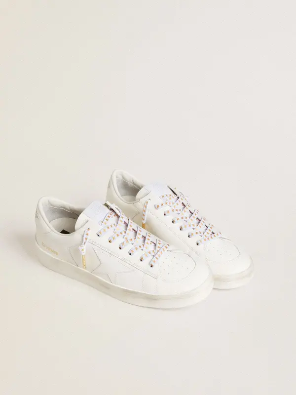 Personalize your sneakers and make them unique with the assortment of colors, finishes and exclusive details of our laces. Experiment with your pair and find alternative uses, wearing one as a bracelet or key chain. This model in white cotton features a print with contrasting gold stars.
