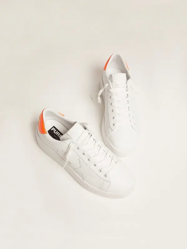 White Purestar sneakers with fluorescent orange heel tab