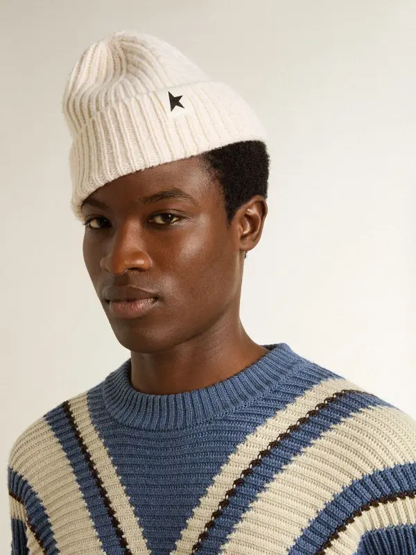The must-have accessory for a Golden total look, a collection with a casual soul but a versatile attitude. This papyrus-white beret in pure wool features a contrasting black star on the front.
