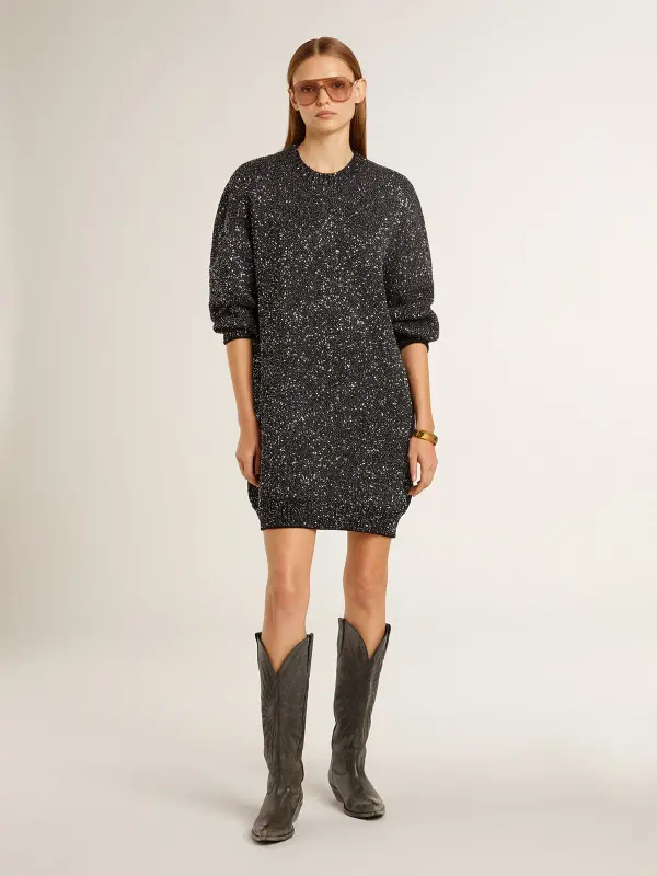 Inspired by the electric energy of the Nineties, the collection celebrates the limitless power of shared dreams. Moved by passion, each design captures the meaning of togetherness and the power of music. In a wool blend, this black crew neck dress with an oversized fit features all-over silver sequins, making it the perfect piece for any festive occasion.