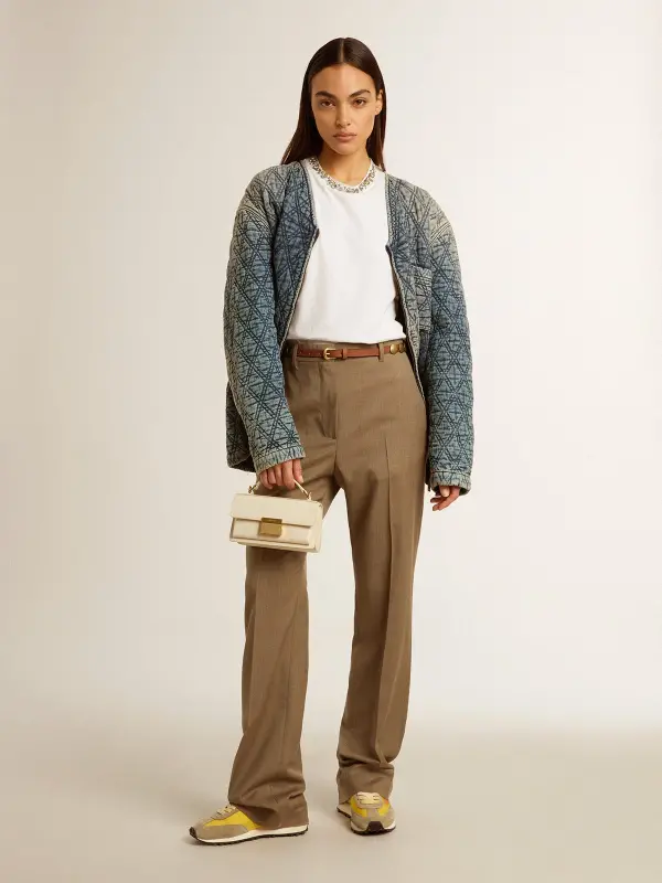 Women’s blue quilted jacket in cotton denim with distressed finish