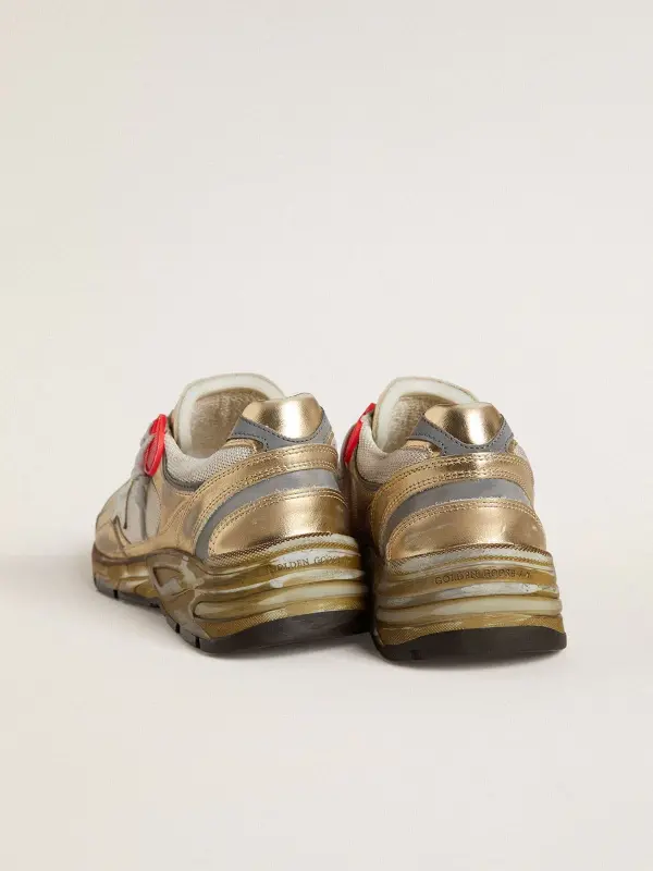 A soul with a wealth of stories to tell: our Dad-Star sneakers have timeless style, created to be passed down through the generations. This version features a white mesh and gold foiled leather upper accentuated by a white leather star and gold foiled leather heel tab. The red eyelets and gray laces add the finishing touch.