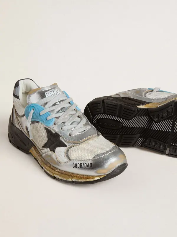 A soul with a wealth of stories to tell: our Dad-Star sneakers have timeless style, created to be passed down through the generations. This version features a white mesh and silver foiled leather upper accentuated by a black suede star and black suede heel tab. The light blue eyelets and ice-gray laces add the finishing touch.