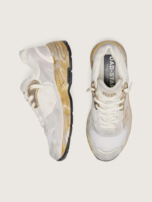 A soul with a wealth of stories to tell: our Dad-Star sneakers have timeless style, created to be passed down through the generations. This version features a mesh and white suede upper accentuated by a gold foiled leather star and white suede heel tab. The gold eyelets and cream-colored laces add the finishing touch.