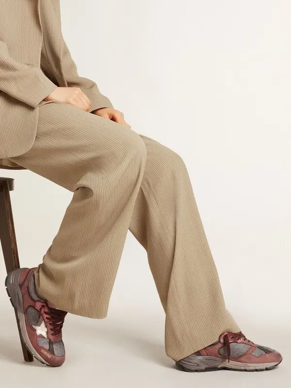 A soul with a wealth of stories to tell: our Dad-Star sneakers have timeless style, created to be passed down through the generations. Loaded with sophisticated details, such as the brick-red nubuck upper with leather and brown mesh inserts, this women's version features a metallic gold leather star and a gray suede heel tab with metallic gold leather inserts. The metallic-effect brick-red eyelets and brown laces add the finishing touch.
