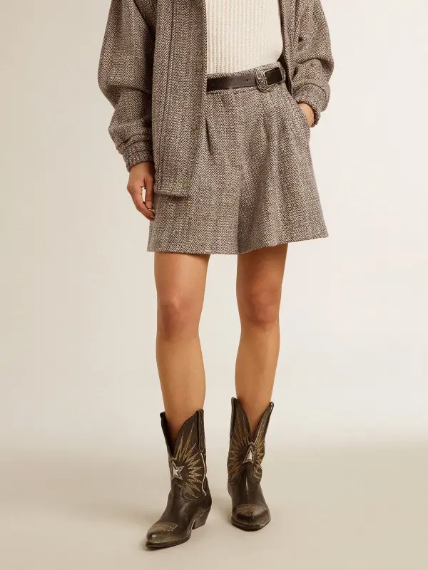 Women’s ecru brown shorts in herringbone wool