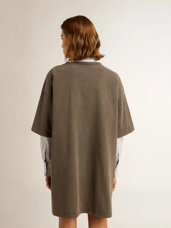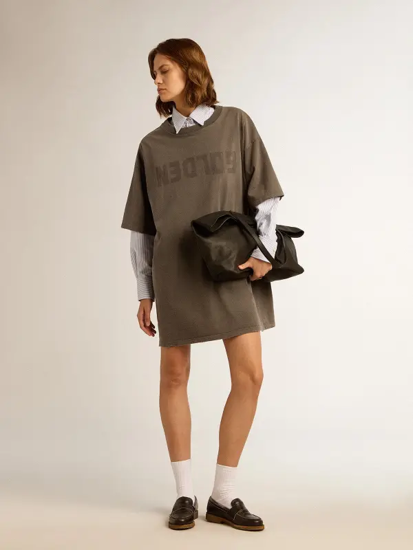 A unique, timeless collection that encapsulates the Golden Goose DNA, designed to remain with you every day, through thick and thin, come rain or shine. In anthracite-gray cotton with a distressed treatment, this T-shirt dress features the Golden logo produced with a resist treatment.