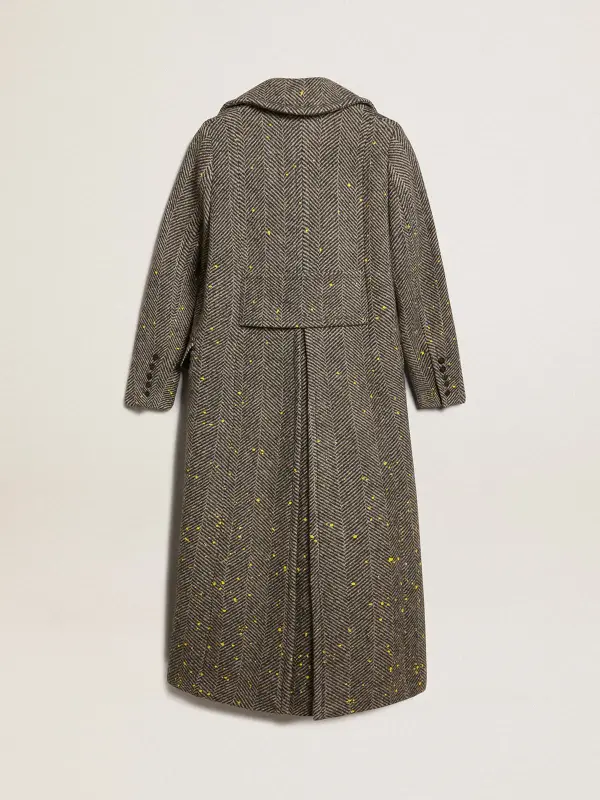 A unique, timeless collection that encapsulates the Golden Goose DNA, designed to remain with you every day, through thick and thin, come rain or shine. This regular-fit double-breasted coat in anthracite-gray chevron wool with herringbone pattern features yellow hand-painted details.