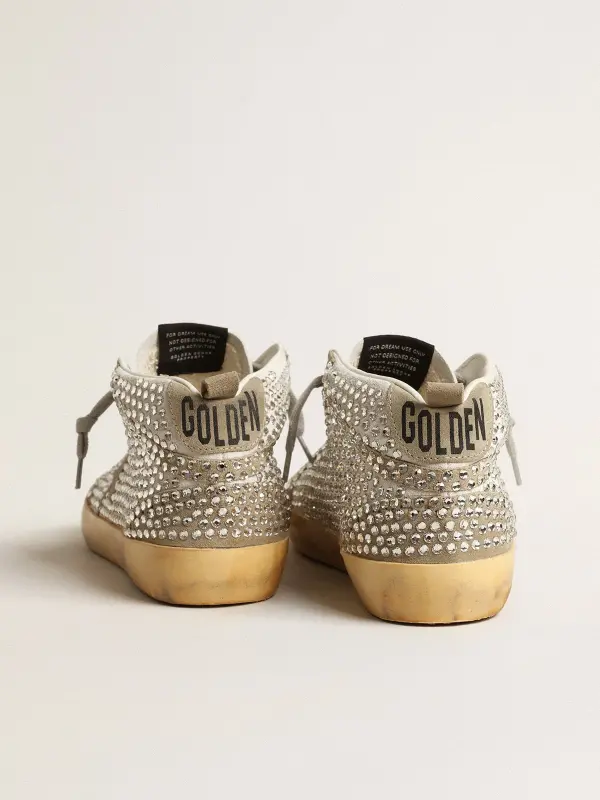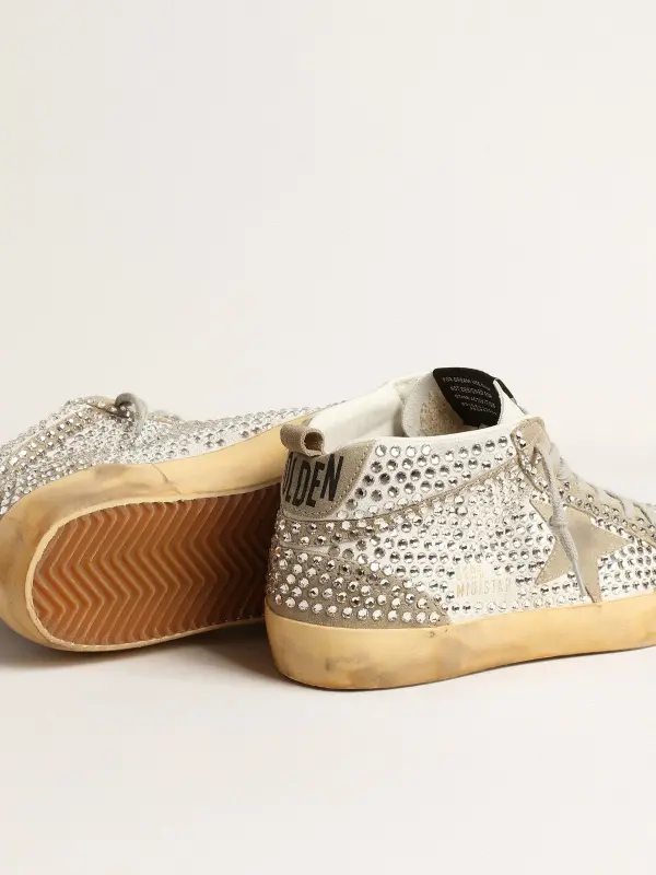 Women’s Mid Star in white and dove-gray suede with Swarovski crystals