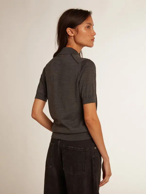 A unique, timeless collection that encapsulates the Golden Goose DNA, designed to remain with you every day, through thick and thin, come rain or shine. This women’s polo shirt in anthracite merino wool features short sleeves and four central buttons.