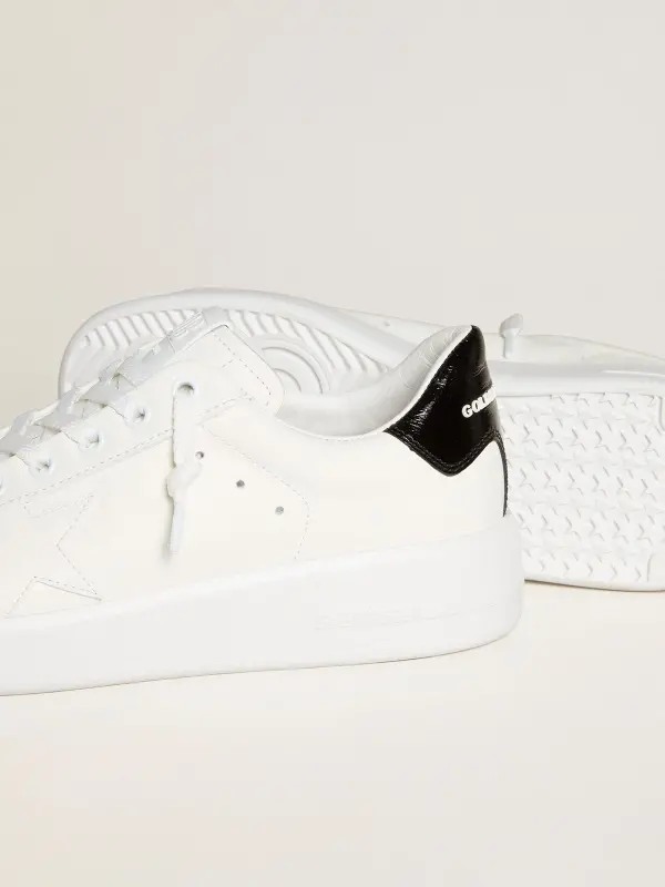When the minimalism of the shape meets the strength of the details: our Purestar sneakers combine an understated style with extreme comfort thanks to their shock-absorbing technology. This women’s model in optical white leather features an optical white leather star and a black patent leather heel tab. The white laces complete the look.
