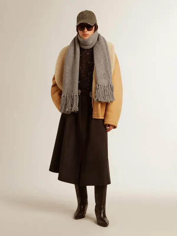 Women’s sheepskin jacket with a wide shearling shawl collar
