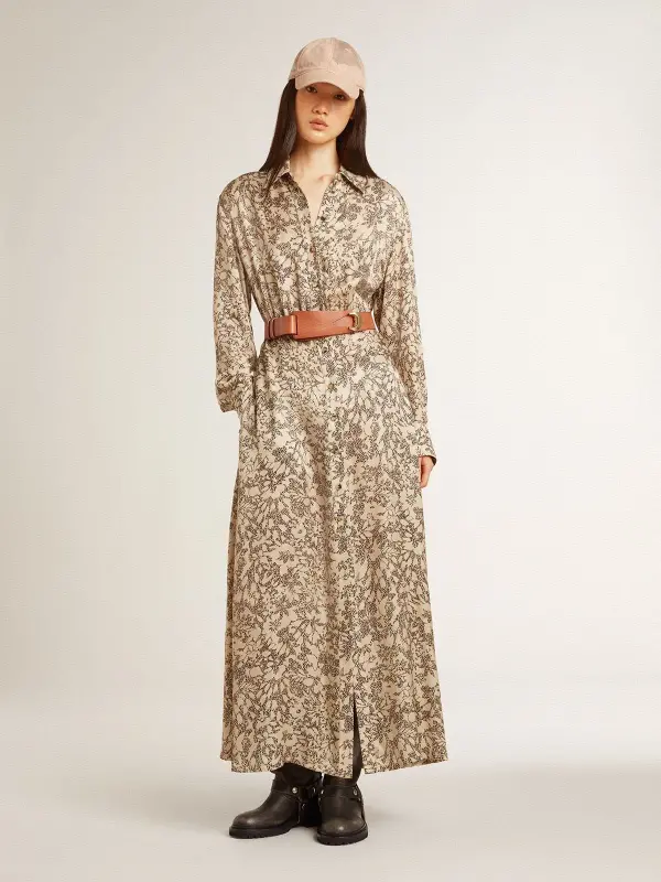 A collection inspired by the harmony of nature, where every detail flows with ease. Made of a silk blend, this midi-length dress features a floral print and long sleeves. And logoed horn buttons add the finishing touch.