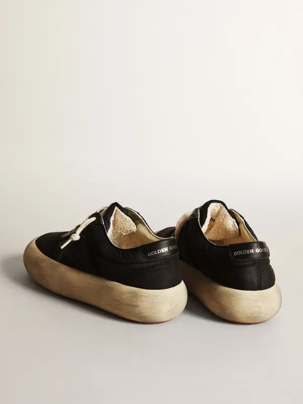 Your new moment to detach from reality and find your center. Your new way to get back to yourself and breathe in your own lightness - flying as never before. Cozy Space shoes feature the extra-cushion sole and insole padded with memory foam, guaranteeing unparalleled comfort starting from the very first step. This women's model, lined in soft leather, features a black nylon upper accentuated with black leather inserts including the star and heel tab. The cream-colored laces complete the look.