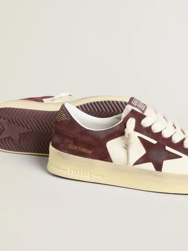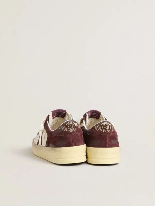 The glorious Nineties wrapped up in a sneaker. The Stardan sneakers pay homage to the basketball icons of that decade, while keeping an eye on the present. This version with a white nappa leather upper and burgundy suede inserts features a burgundy suede star and heel tab. And white laces add the finishing touch.