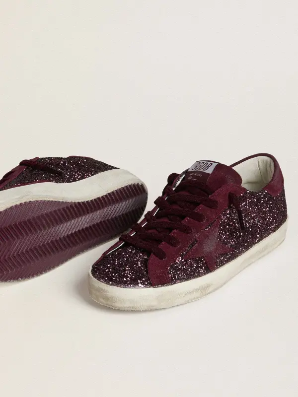 Women’s Super-Star LTD in cherry glitter with cherry suede star