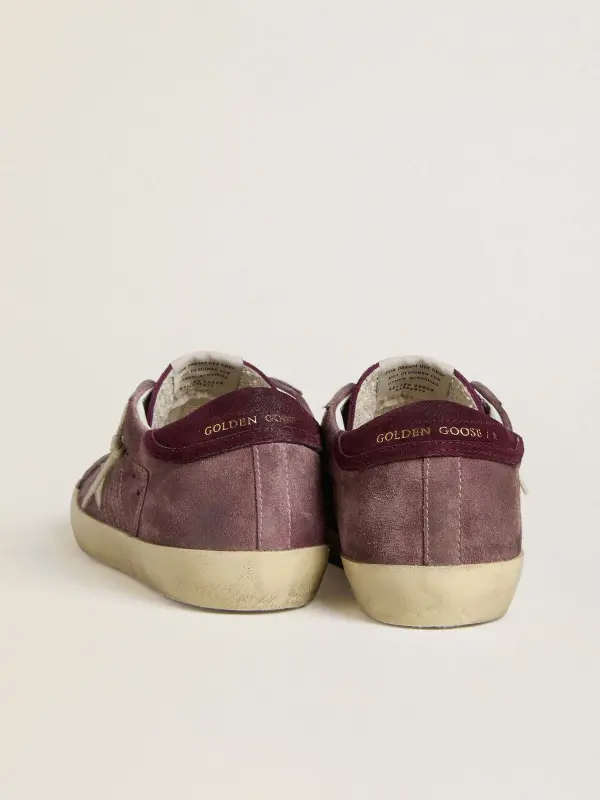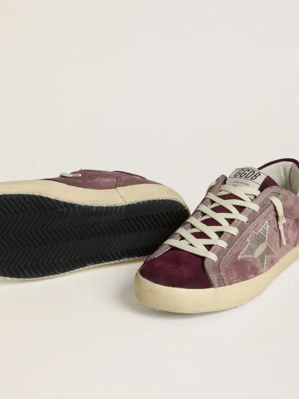 A timeless icon yet one that’s constantly evolving. At Golden, we love taking our classics and reworking them all the time, always from a new angle. These women's Super-Star with a lilac suede upper feature a silver metallic leather star, a burgundy suede heel tab and a burgundy suede tongue. And white laces add the finishing touch.