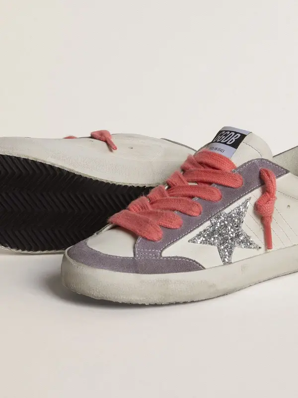 Women’s Super-Star with silver glitter star and lilac suede heel tab