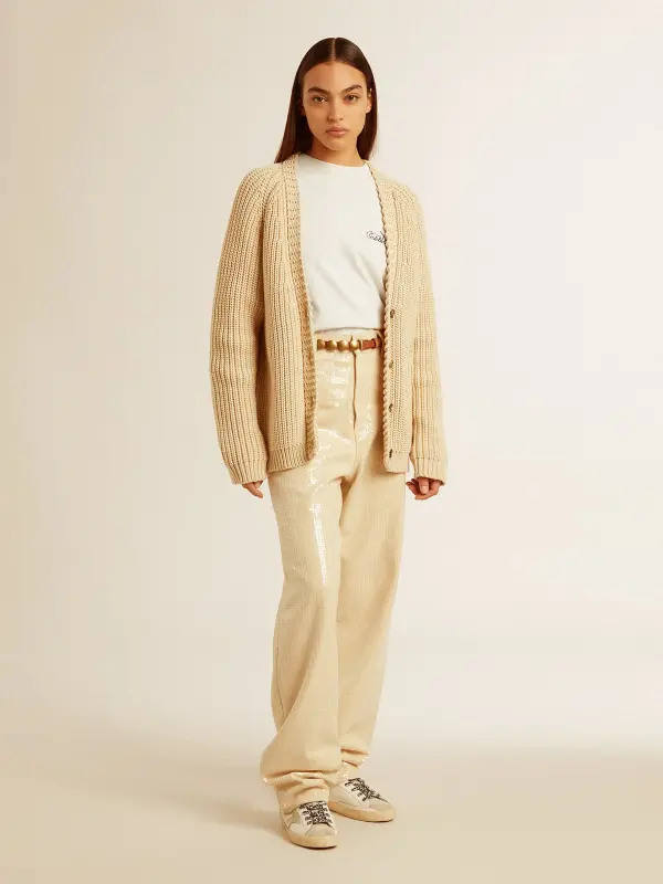 A love story to our home, Marghera. Where everything began. Our latest collection reflects the spirit of our birthplace, its contrasts, industrial soul, and manufacturing landscapes, weaving together inspirations from both the vibrant energy of workwear and the refined essence of traditional tailoring. In aged-white cotton jersey, this women’s T-shirt features a black logo printed on the chest.