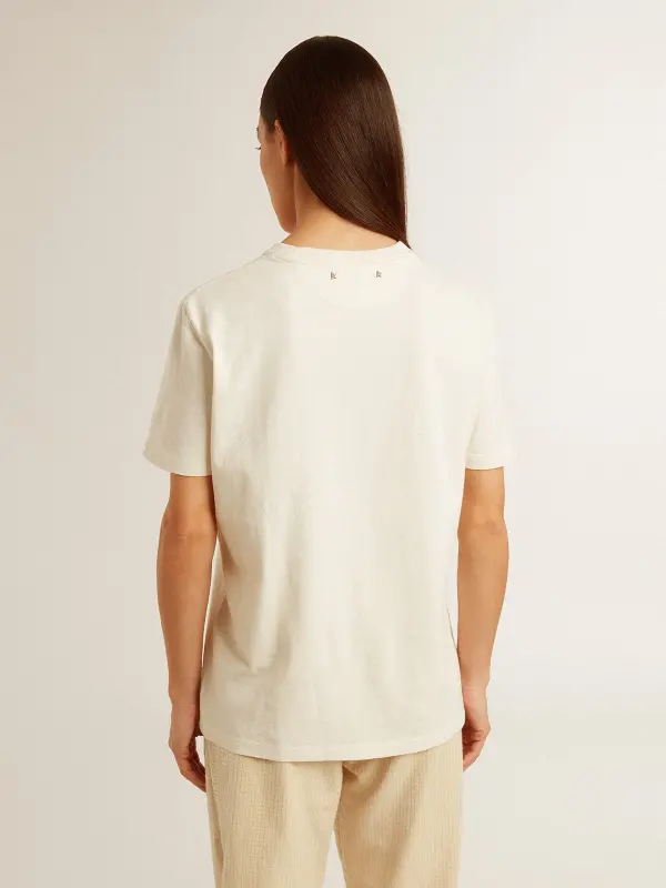 Home / Shop / Clothing / Women’s T-shirt in aged white with logo on the chest