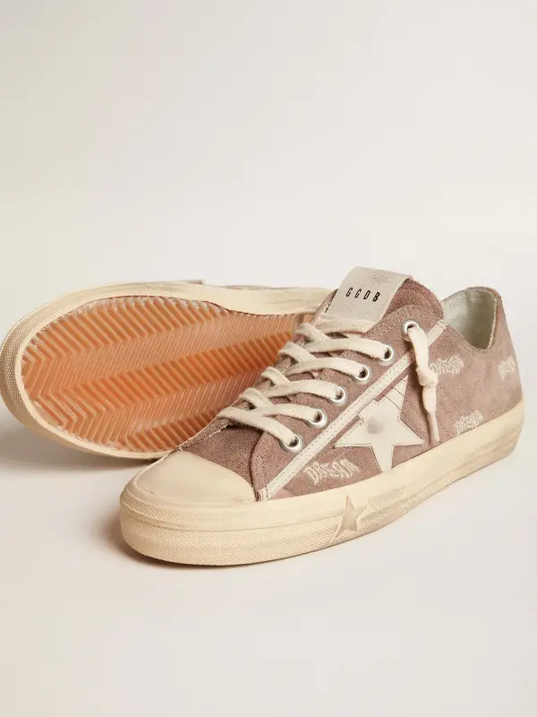 Beauty that lies in simplicity: in our V-Star sneakers, an essential shape meets stylish detail. This women's model with a dove-gray suede upper accentuated by all-over embroidered lettering features a light gray leather star. And light gray laces add the finishing touch.