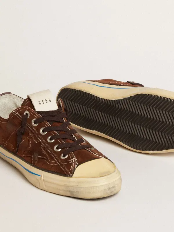 Beauty that lies in simplicity: in our V-Star sneakers, an essential shape meets stylish detail. This women's model with a dark brown suede upper with all-over white stitching features a tone-on-tone suede star and a glossy outsole. The light blue stripe on the foxing and dark brown laces add the finishing touch.