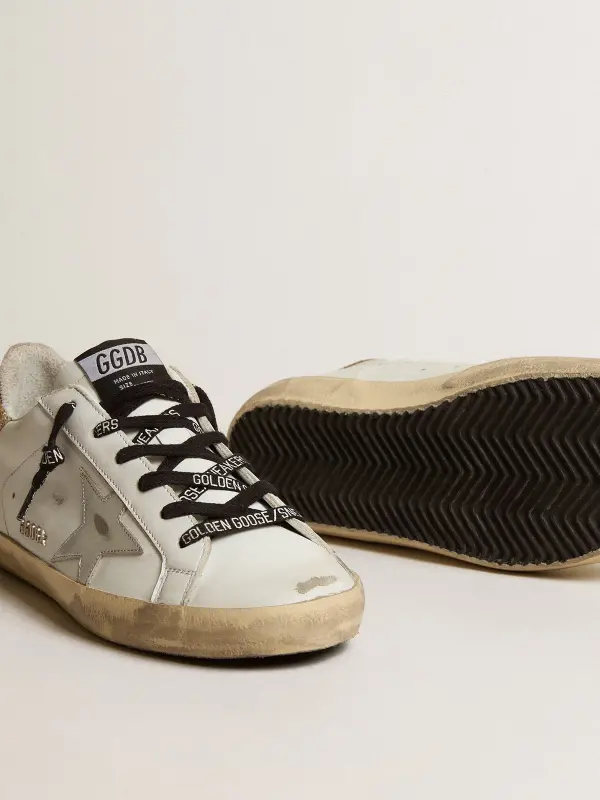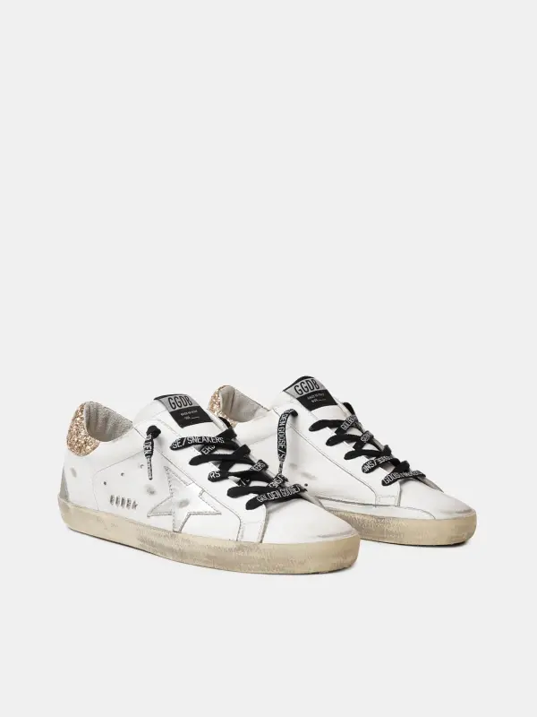 We create classics, and update them to make new ones. We have enhanced the design of these white leather Super-Star sneakers thanks to the glittery gold heel tab. A touch of glamour for added style.