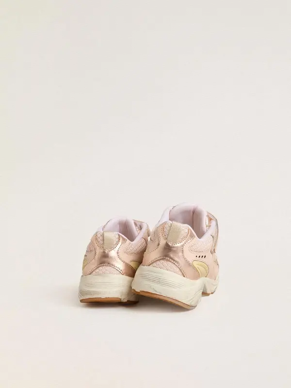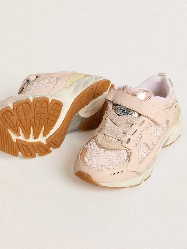 A flashy memory of Y2K. Lightstar is a symbol of nostalgia with a future-forward touch. With metallic flairs, shiny hints of light, and a chunky sole, the Young version of this model is always in the spotlight. With a pink leather and mesh upper, this model features a pink leather star and flat pink laces. This model is embellished with details that complete the look: metallic leather inserts, logo label on the tongue, and mesh textures.