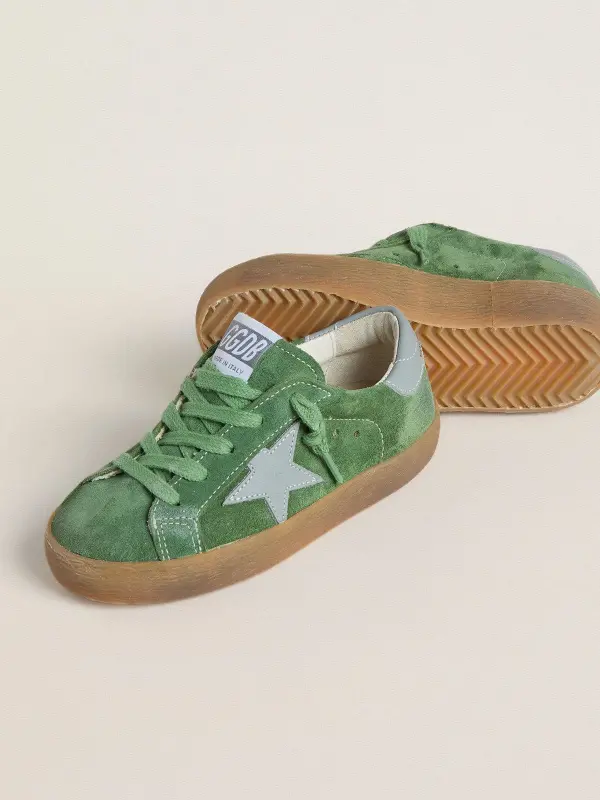 Young Super-Star in green suede with baby blue star and heel tab