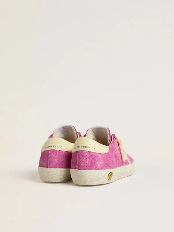 A timeless icon yet one that’s constantly evolving. At Golden, we love taking our classics and reworking them all the time, always from a new angle. This Young version of the Super-Star with a pink suede upper features a light yellow leather star and heel tab. The contrasting smiley detail on the foxing and light yellow laces add the finishing touch.